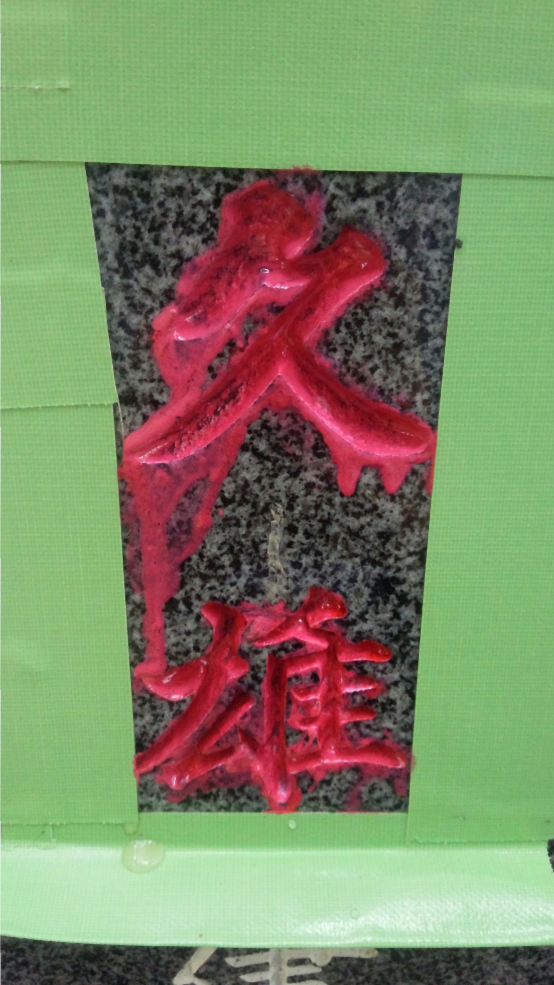 養生してから、筆で、塗料はがし液を塗って行きます。