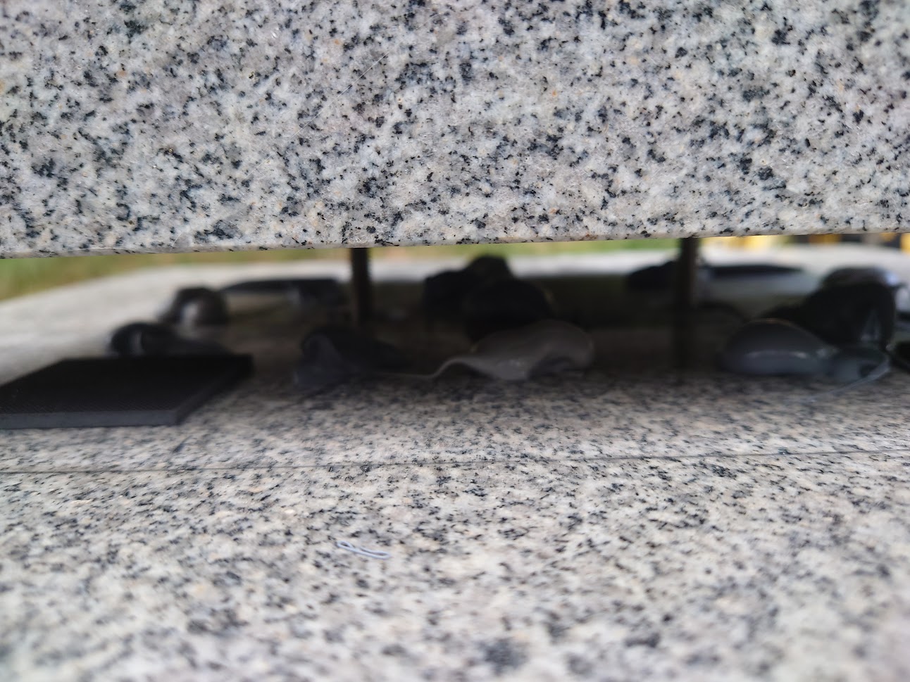 免震パット、あるいはただ単に接着剤のみの施工のお墓でも