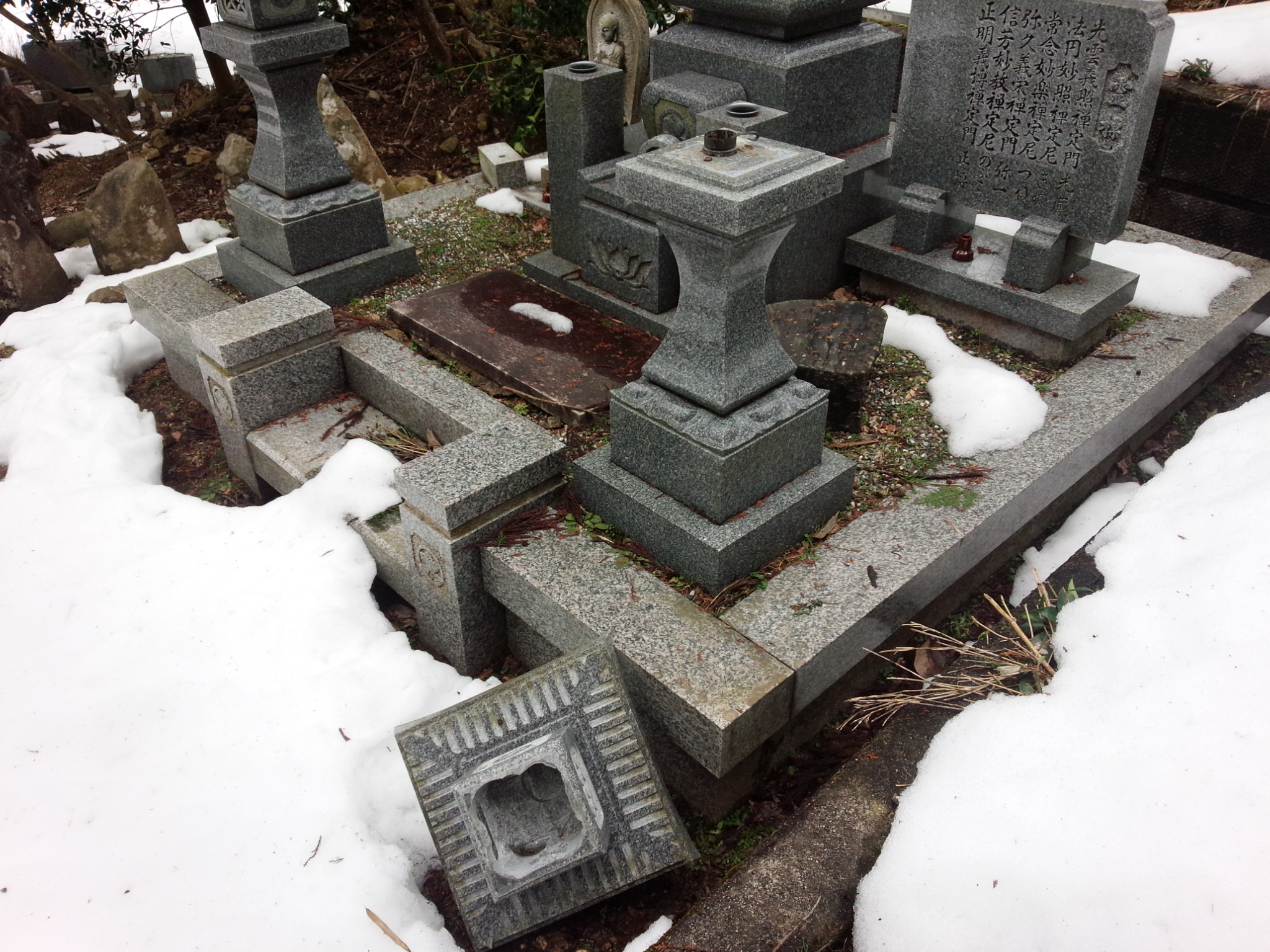 雪が消えてきたので、ご自分のお墓の灯ろうを確認された方がいいかもしれません。