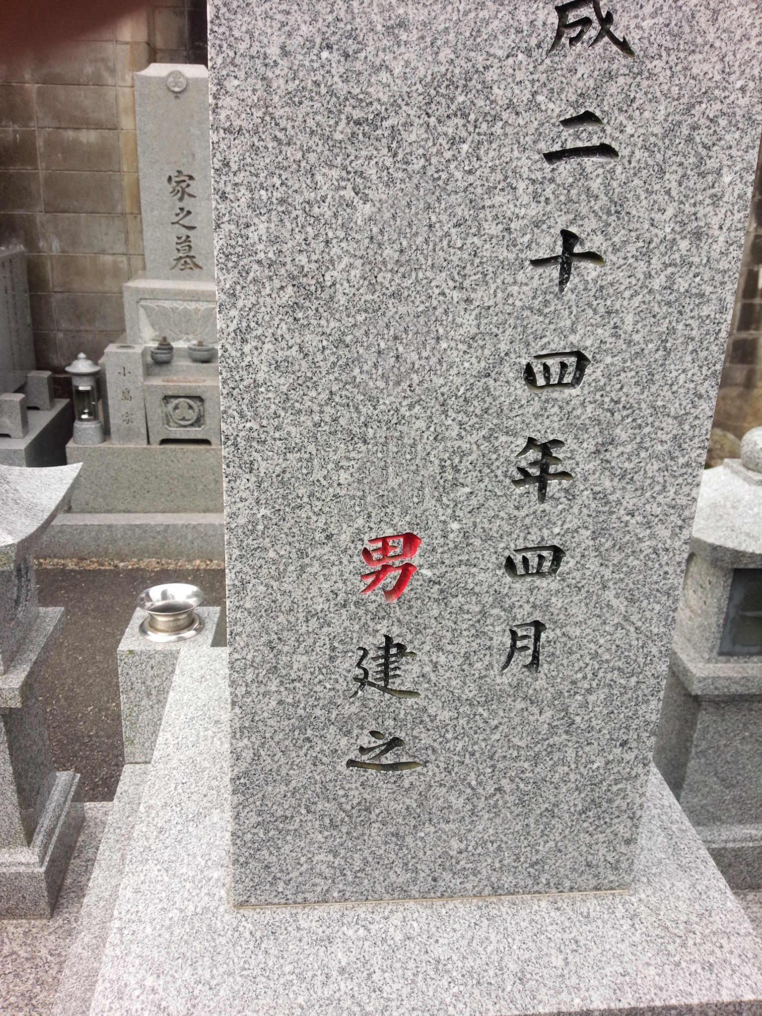 本来、亡くなった人がお墓を建てる訳がないので、この朱色は入れる必要があるかどうかは不明ですが、いれる場合と入れない場合があります。