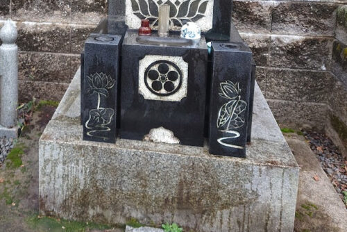 ですが、古いお墓にはまだ古いタイプの花立の石が残っていて、