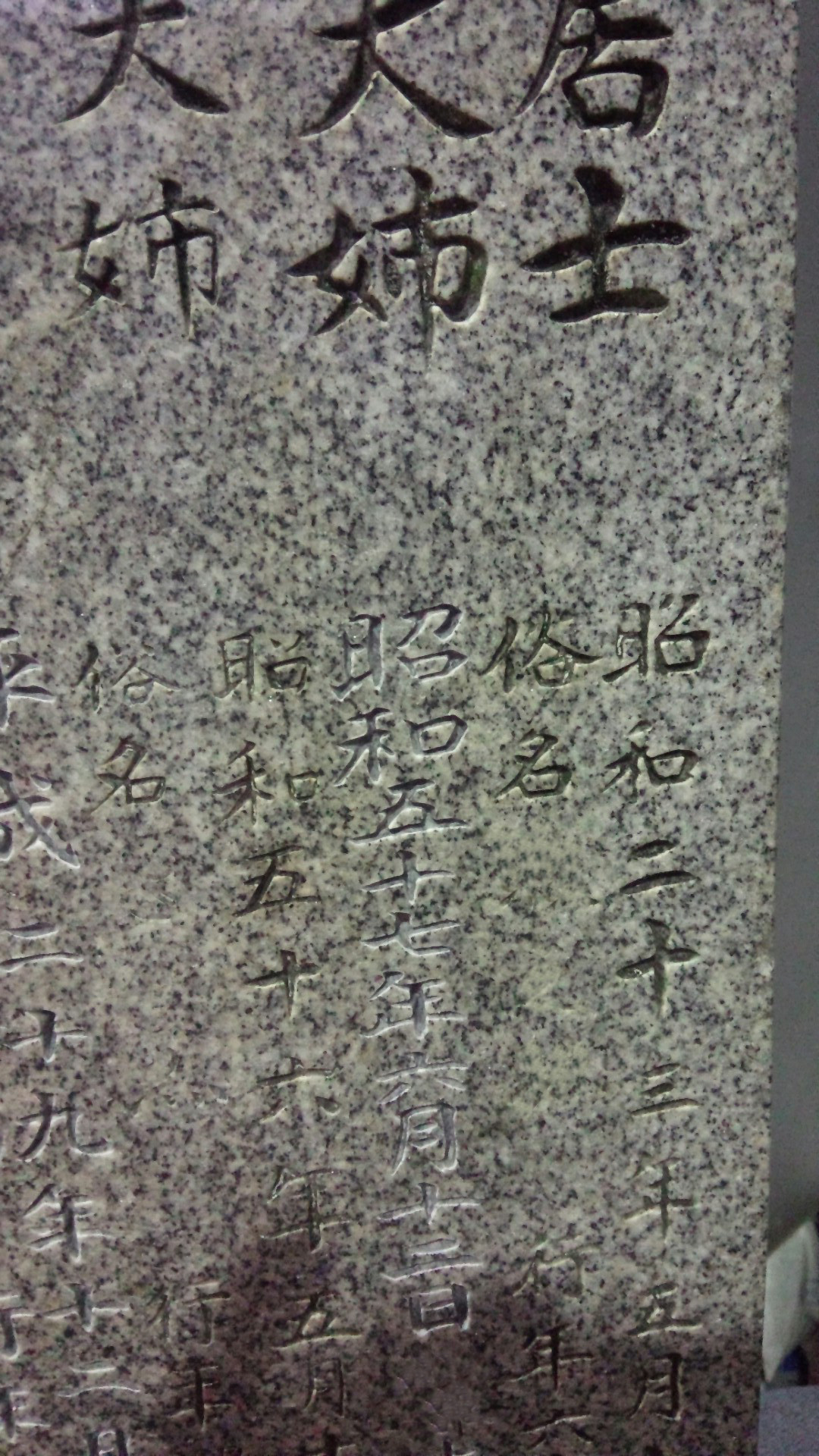 その中の真ん中の人の没年、名前、没年齢が彫刻されておりません。