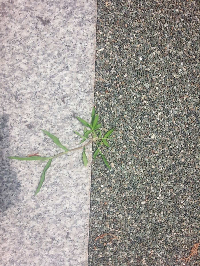 このように石と樹脂の間のわずかなすき間から生えてくるんですよね。