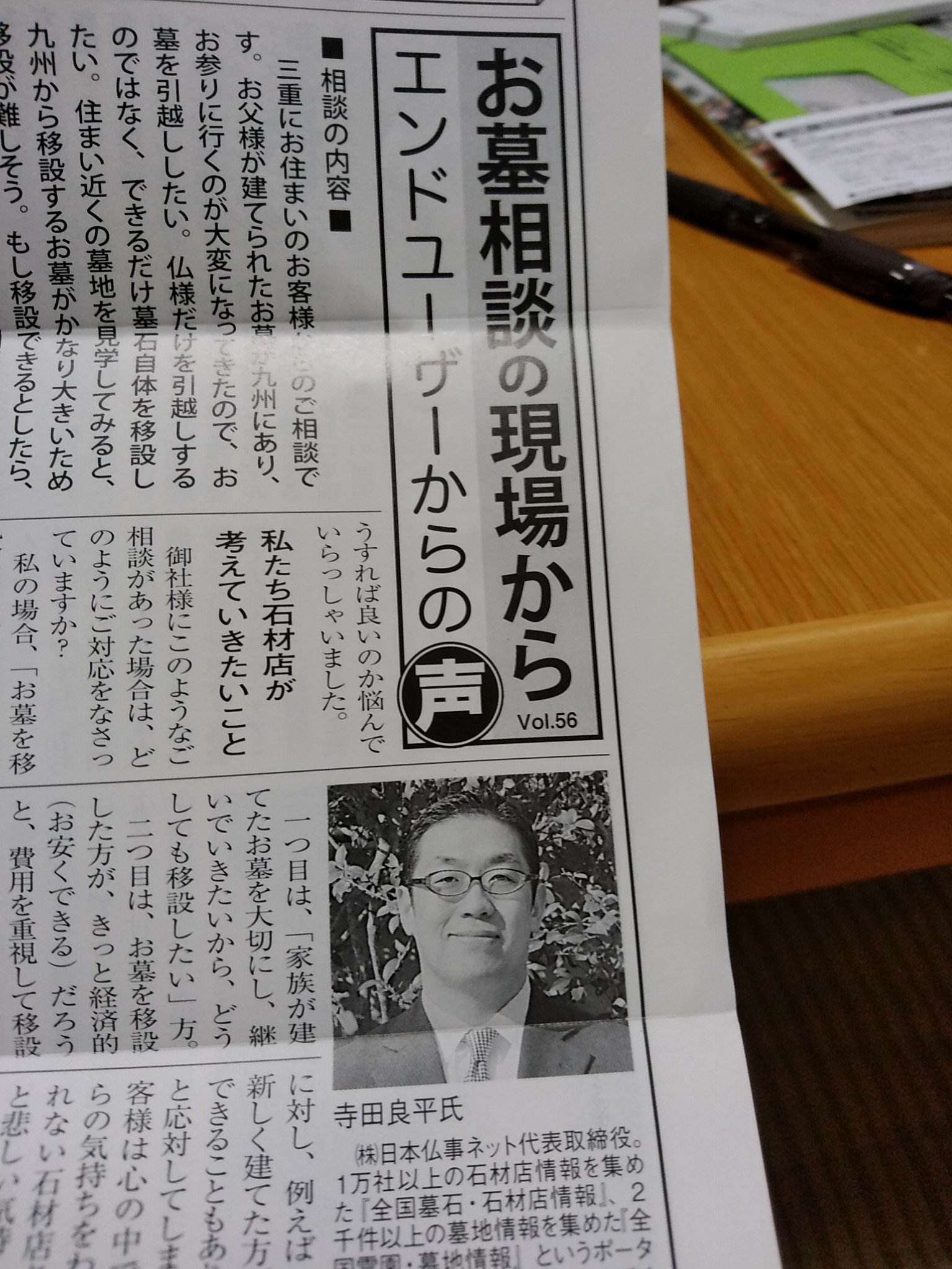 業界紙の「日本石材工業新聞」という新聞紙があります。