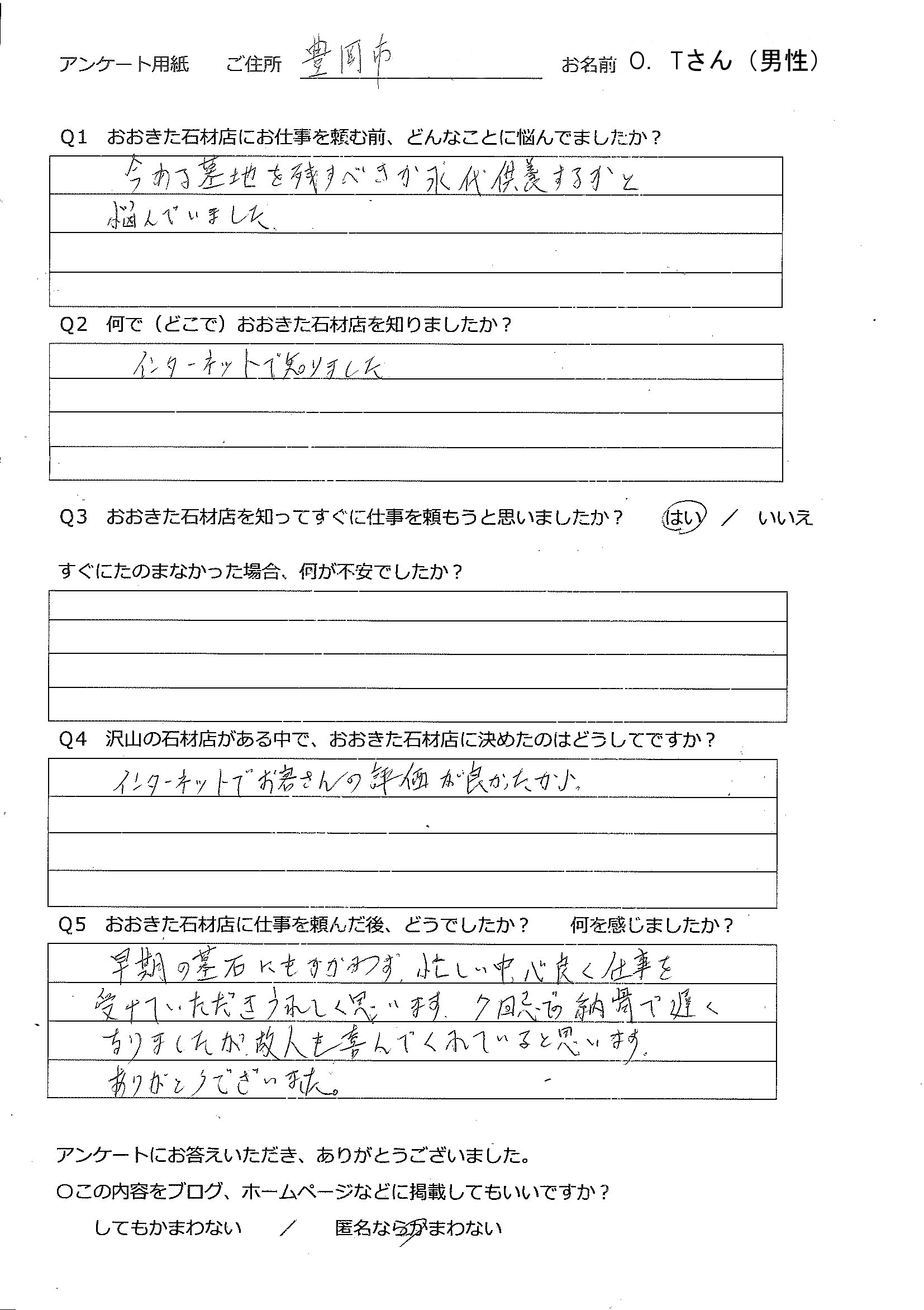 おおきた石材店のお客さまでまだクチコミ頂いていない方からも