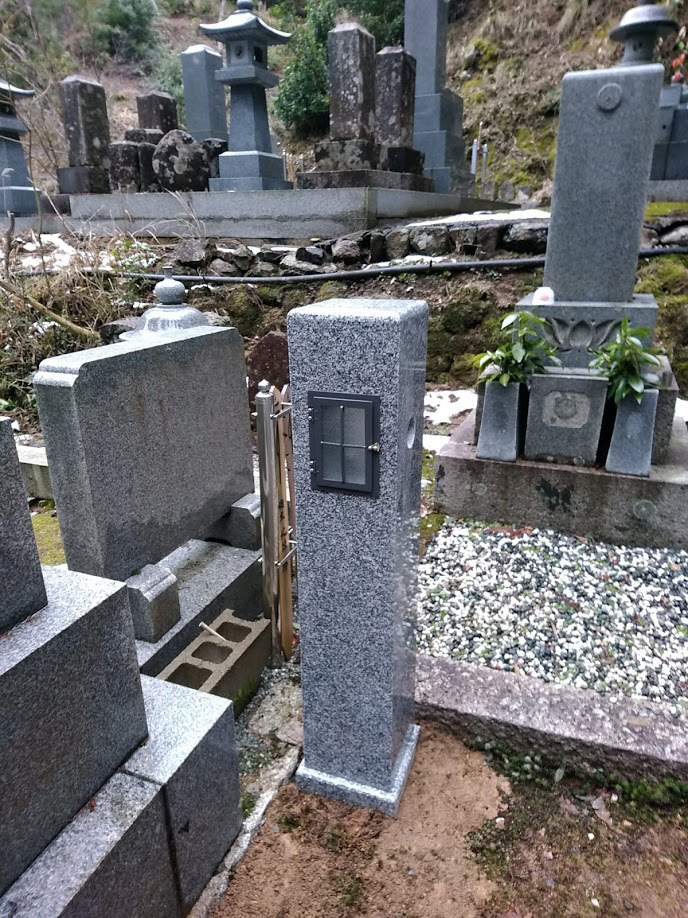 こんなのです。お墓の間口が狭いので、1基のみの設置をご提案したんですが、