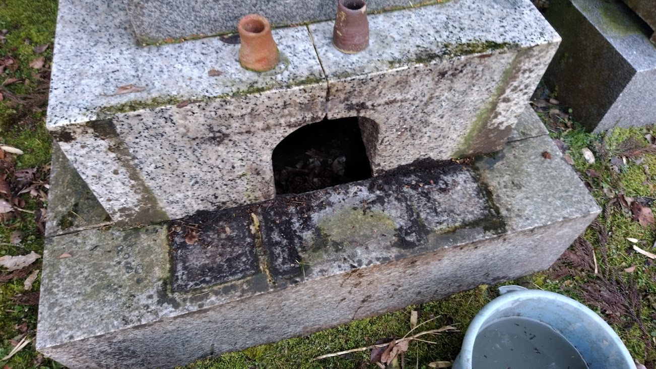 この赤枠の部分、花立と水鉢というお墓の部材ですが、これを取り除くと