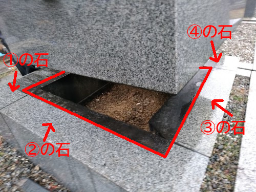 古いお墓を撤去した時の写真ですが、下に写っているのが、4つの石ですね。