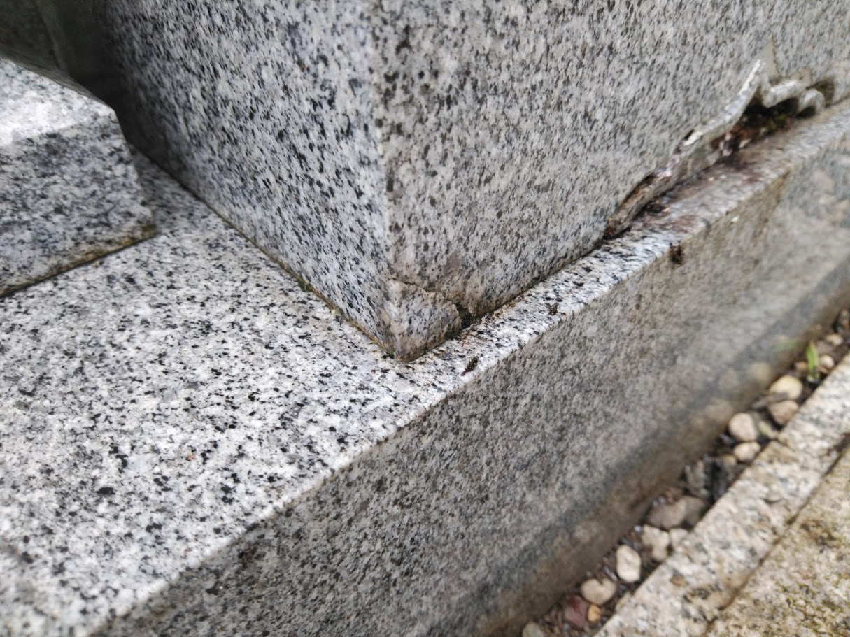 このお墓は建ててから10年以上経過しているので、このように欠けてしまうことはある程度仕方ないのですが、欠けにくいように対策する、ということも必要ですね。