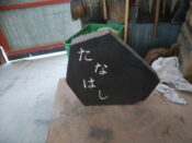 天山石材の社長も「黄緑チーム」でした。このように、tenzanという名前を吹き付けるプレートを作って、出荷先が決まった石にはスプレーでtenzanと明記するそうです。