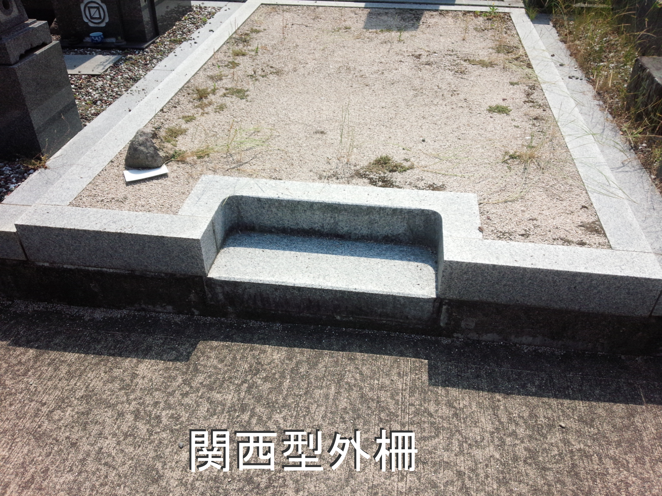 外柵というのはお墓の周囲を囲んで、お墓の境界を示すとともに、お墓自体を守る構造物です。形は様々ですが、石で作られることがほとんどです。