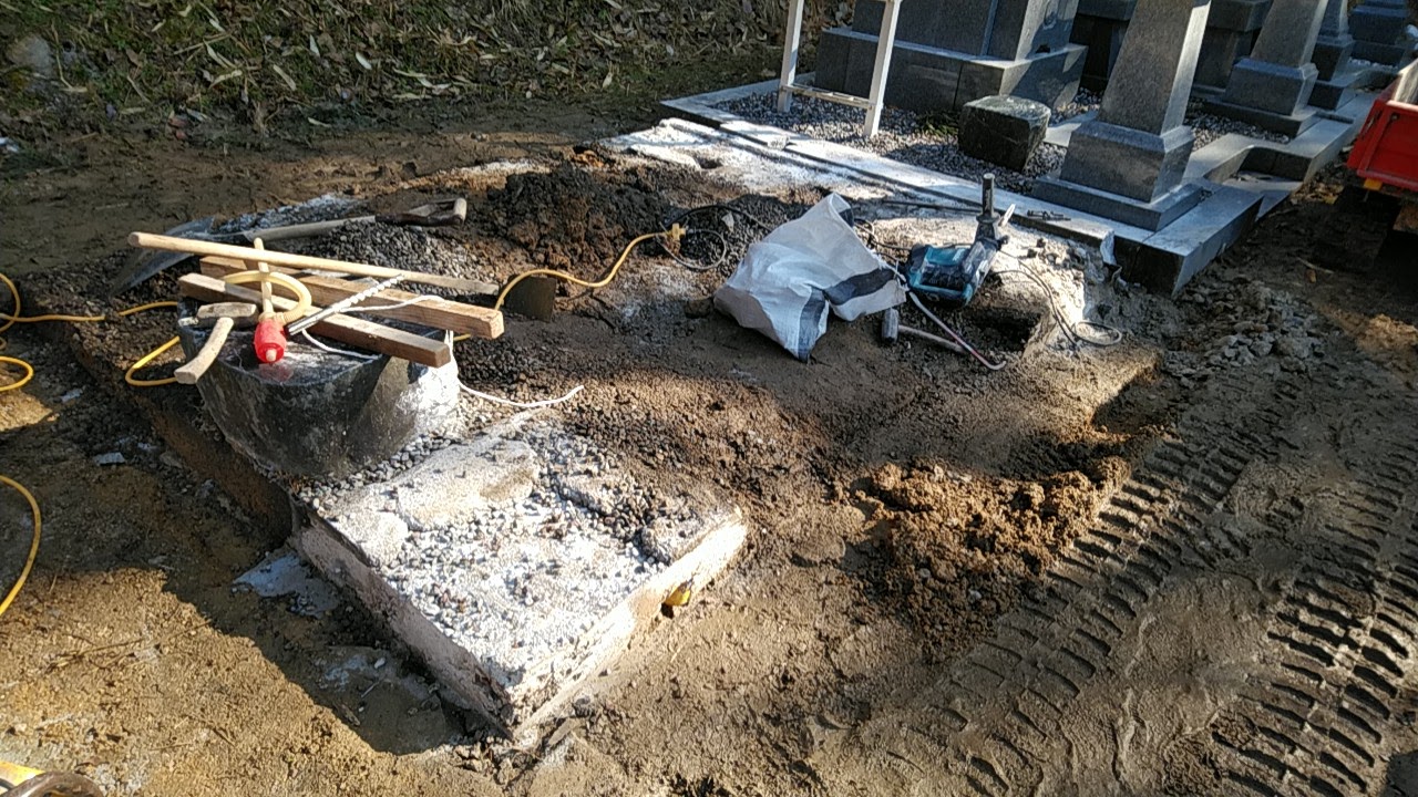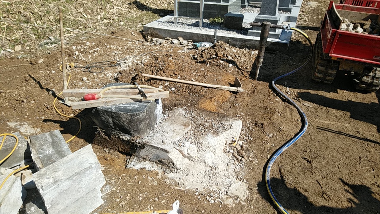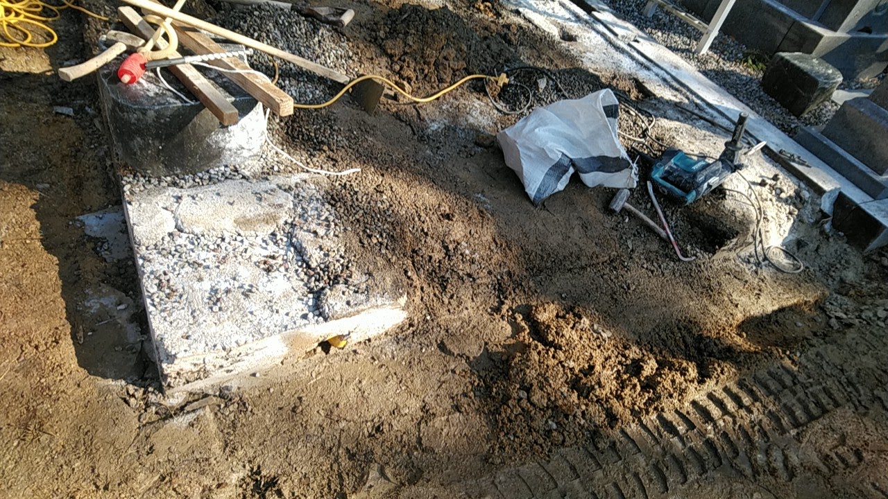 この破砕作業をしてみて思ったんですが、今現在、私が施工しているお墓のコンクリートなど、これよりはるかに配合の良いコンクリートを施工しております。