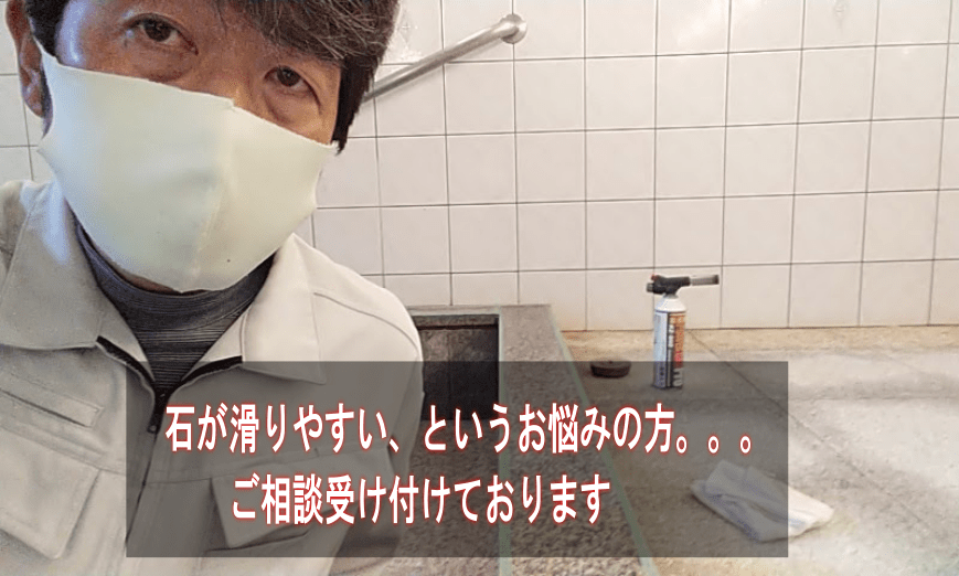 それはさておき、屋外、玄関回り、お墓の周囲など、石やタイルが貼ってある部分、滑りやすくて困っているというお悩みの方、ご相談受け付けております。