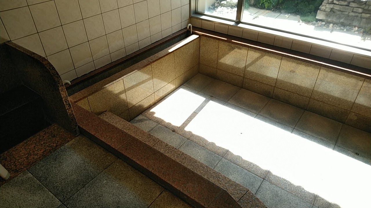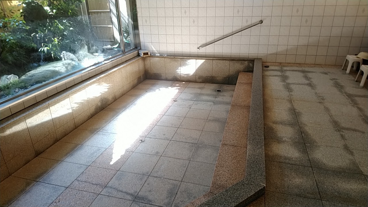 普段はお湯が溢れているんですが、防水工事も同時にされるので、現在、水は抜いてあります。