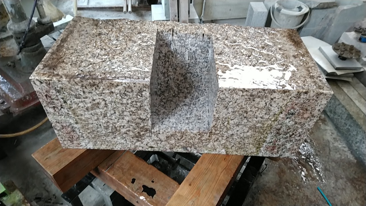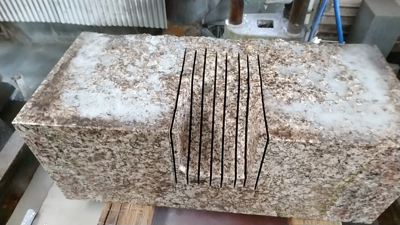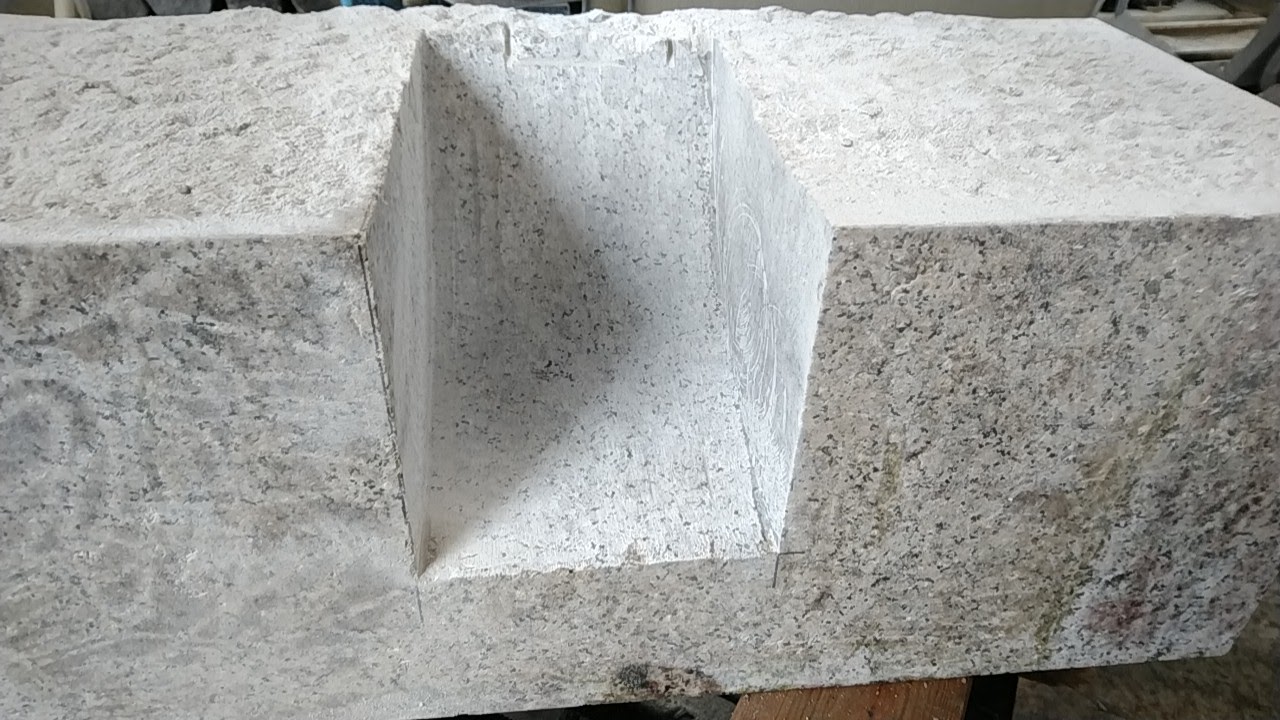 手作業ですが、大まかに取り去りました。でも石は加工すると大量の埃(ほこり)、粉塵が出ます。で、石が真っ白になってしまったので、水で洗い流すと。。。