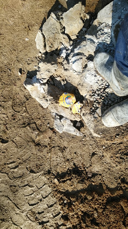 写真は他の石材店さんが建てたお墓の解体工事を依頼された時の写真です。ジュースの空き缶がコンクリートの中に入っていました。休憩の時飲んだジュースの空き缶をコンクリートの中に入れたんでしょう。空き缶を入れるくらいだから、他にも入っている可能性があります。