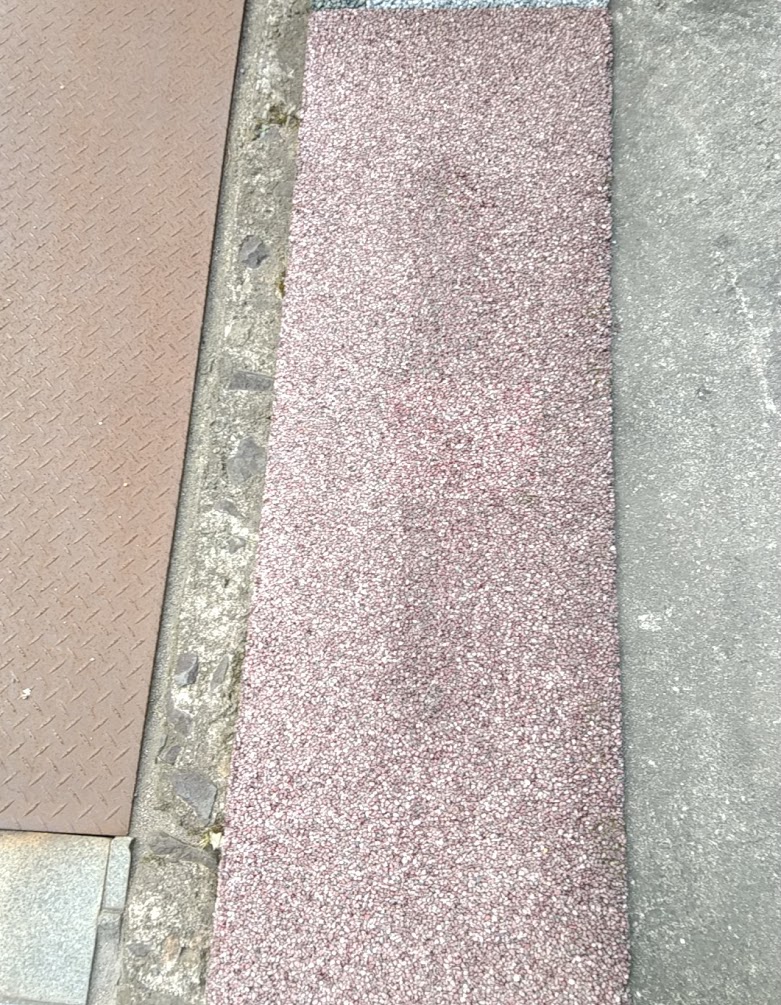 上の写真は2021年6月1日に撮影したものです。工場前に設置したものですが、直射日光がバリバリにあたり、冬は雪の下に埋まるという厳しい環境下にある場所に施工しました。上の赤色は施工後10年以上経過しています。ずいぶん退色していますが、表面はまだしっかりしております。下の白っぽい砕石と右下の濃いグレー系のやつは5年以上経過したものです。どちらも光沢は徐々に落ちつつありますが、まだ残っています。