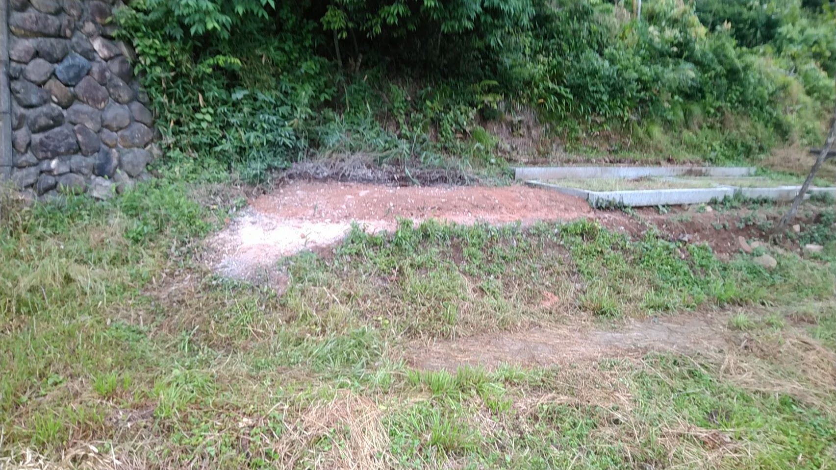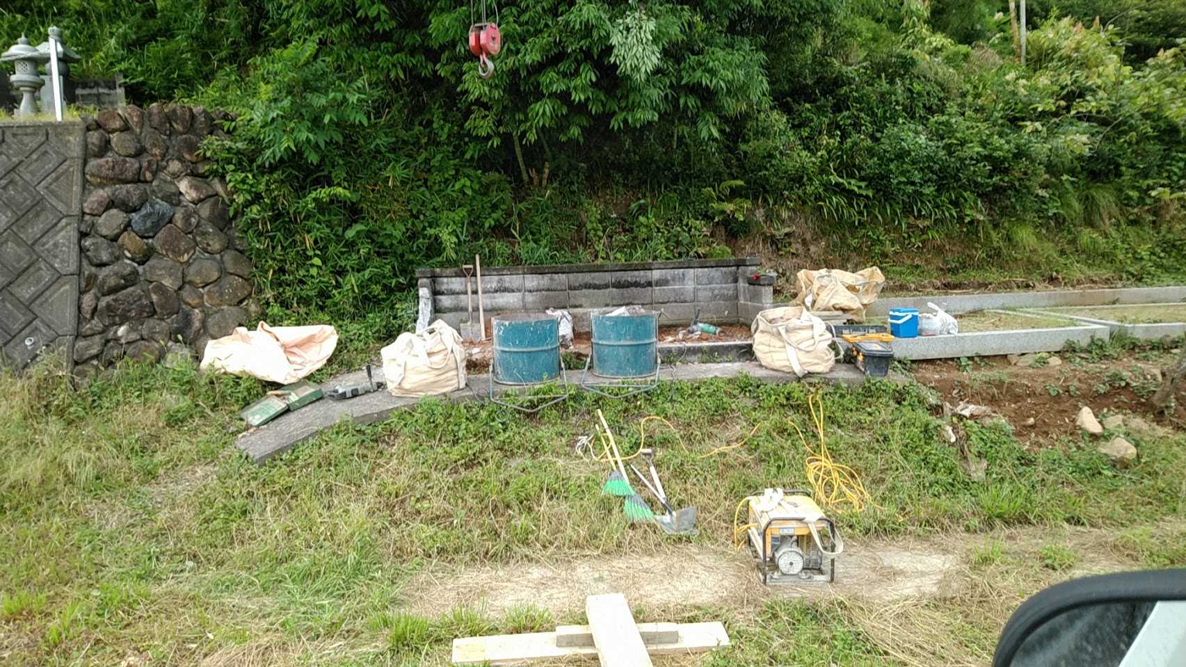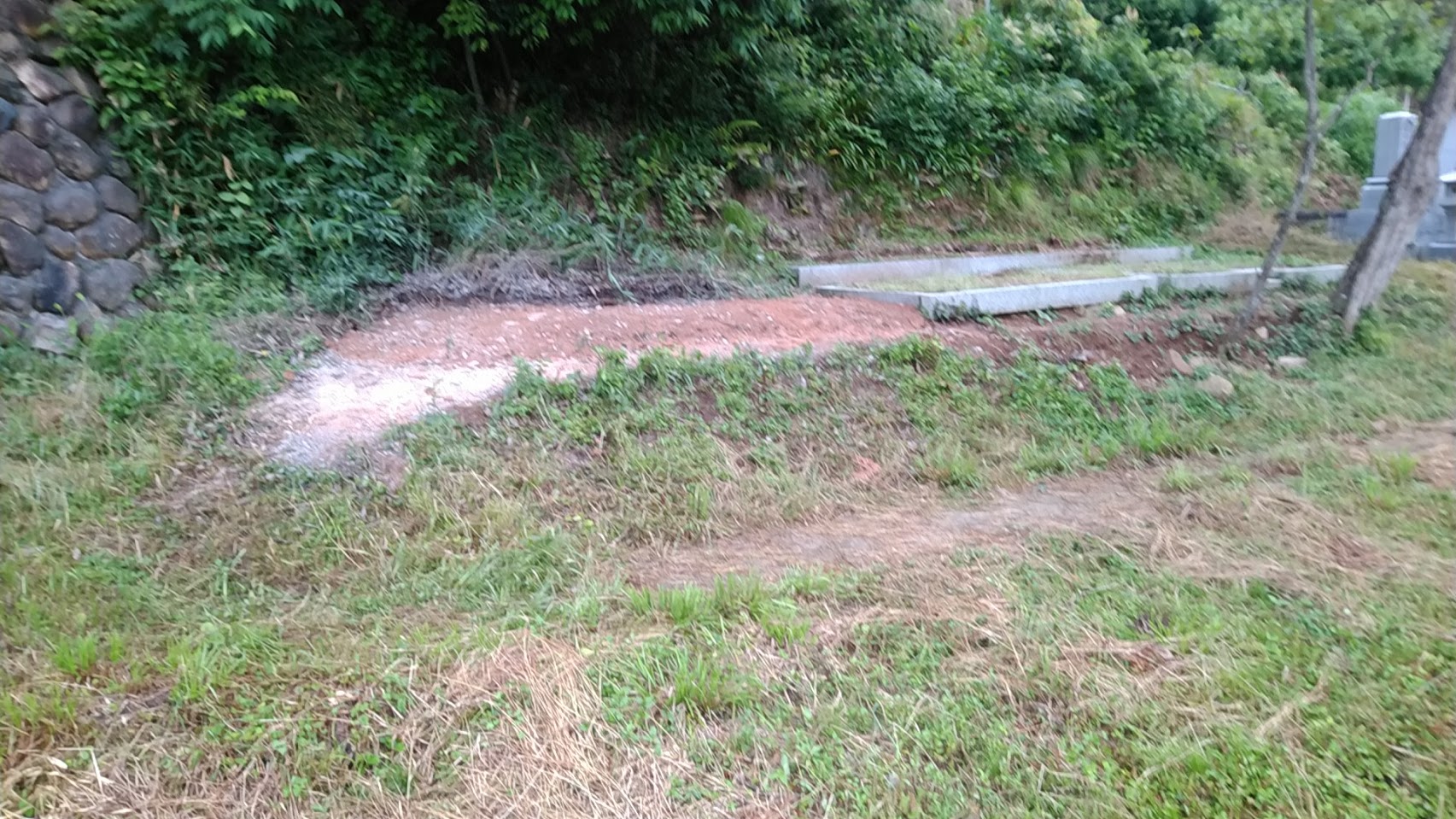 お墓の移転工事を始めます。山際に建っているお墓なんですが、お参りが多少不便ということで、寺院墓地へ引っ越しさせていただくことになりました。