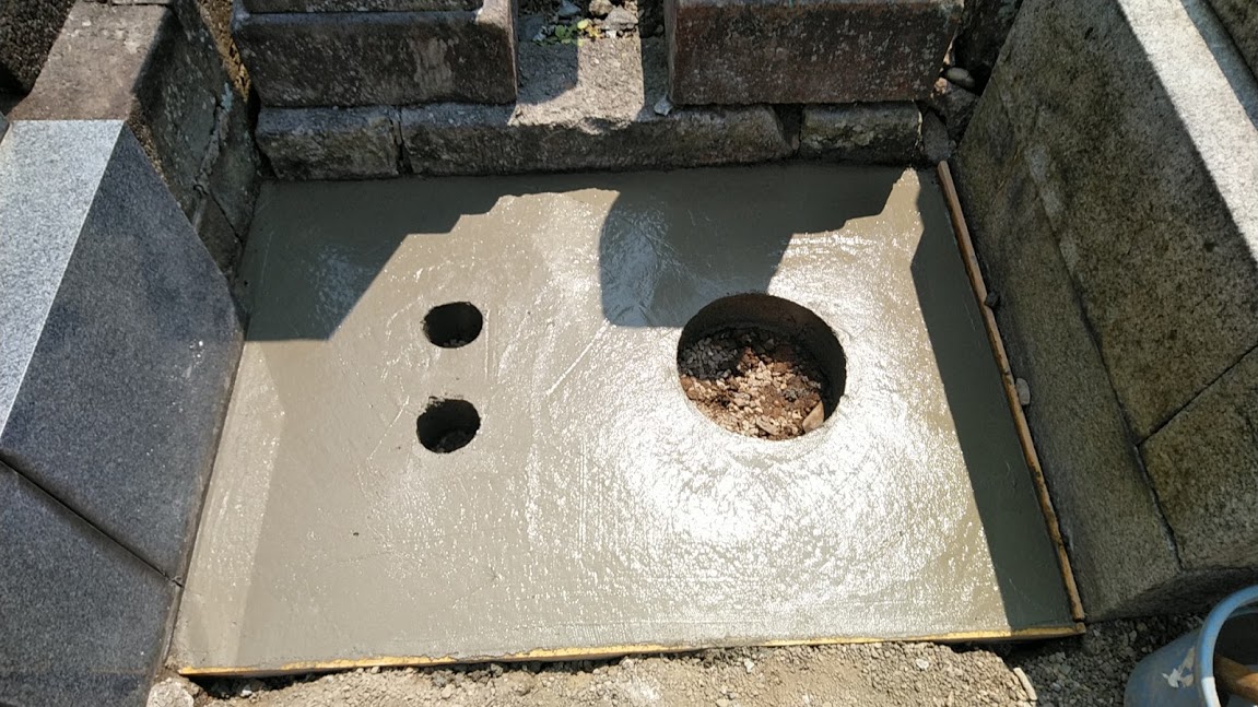 通常のお墓なら、「芝台」と呼ぶ部分ではありますが、この「丘カロート」タイプのお墓は、普通のお墓とは少し構造が違うので、施工方法も微妙に違います。