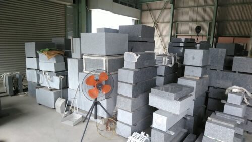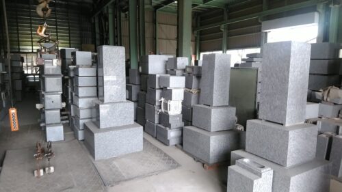 さほど狭くない、むしろ広めの工場にぎっしりと「庵治石」が並んでいました。というか、すべての石が庵治石です。しかもほとんどすべての石が一つの丁場の石だとおっしゃりました。。。