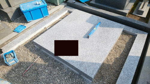信頼棺の蓋一枚石だけ、新規に作りました。中国産の最近、取り扱うようになった石ですが、見た目が美しく気に入っています。