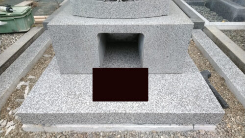 納骨口の部分、公表できないので隠してありますが、雨水が浸入しないように工夫があります。