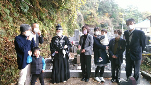 コロナが落ち着いて、各地にお住まいの家族の皆さんが、勢ぞろいされて、お墓で納骨式を実施されました。