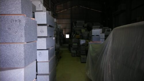 こちらは、とある庵治石の採石をされている会社さんの倉庫です。