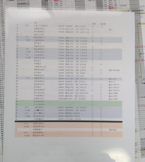 家族の関係を配慮して、戒名碑に彫刻する順番にリストを作ります。ただ、関係性がわからないご先祖様の場合が困ります。