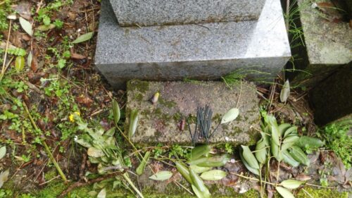 お墓の前にはブロックがおいてあるだけ。これではあまりにも。。。なので、ここも直します。