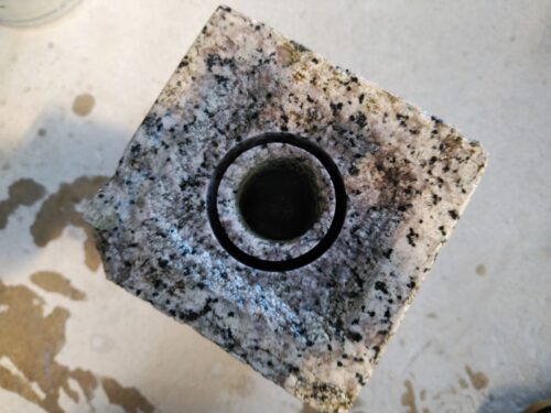 花立の穴を開けます。少し穴が小さいので大きめの穴に開けなおします。