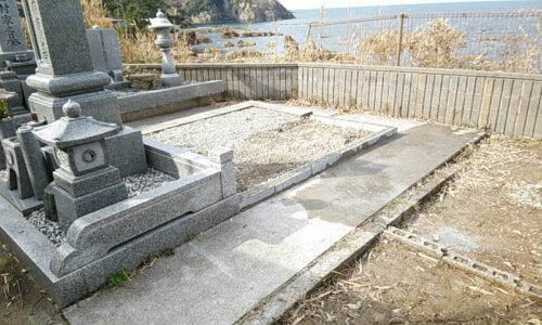 その日本海の寒風がまともに当たる墓地の工事をご依頼頂きました。