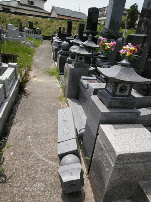 この写真では分かりずらいですが、一直線に被害の大きいお墓が並んでいるんですね。