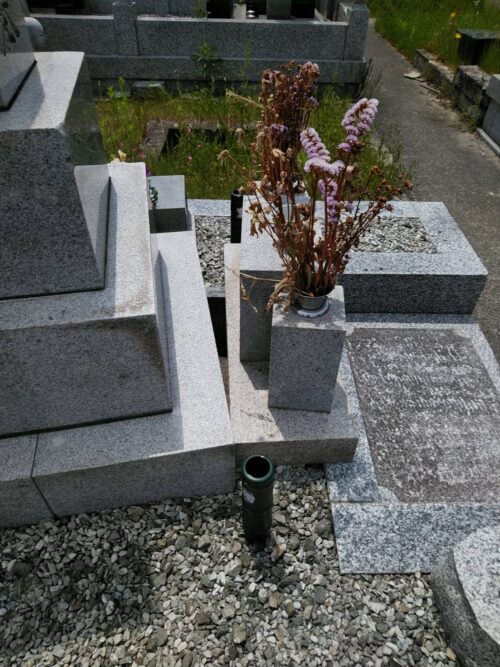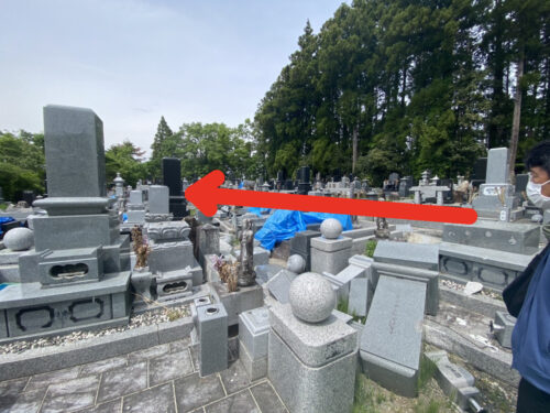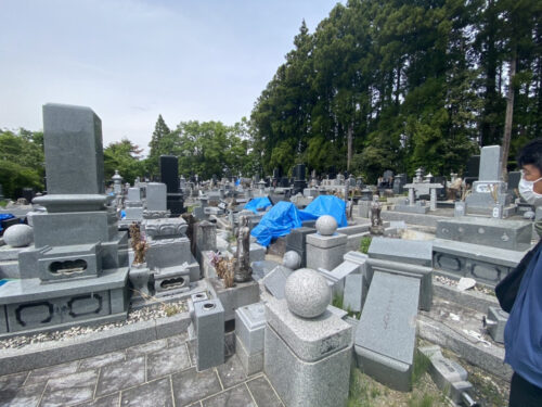 墓地の見学をしている間、女性がブルーシートを持って墓地に来られました。どうやらお墓がずれて、お骨が見える。お骨が雨でぬれるのが嫌でブルーシートで覆う作業を一人でしようとされていたようです。