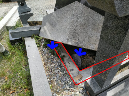 赤い線枠の部分は上の石を支えるコンクリートの部分です。正確には「モルタル」ですけどね。