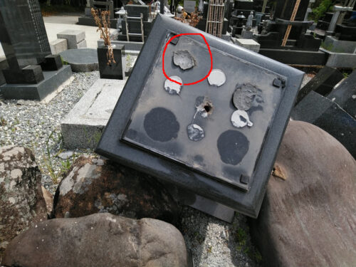などが考えられます。もちろん倒壊した原因はそれ以外にもお墓の下の方が原因である可能性の方が高いですが、この写真を見る限り、その可能性がある、と判断しました。