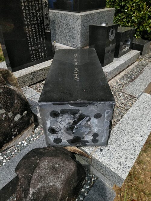 竿石だけ吹っ飛んでしまったお墓です。裏面には接着剤の跡が。。。