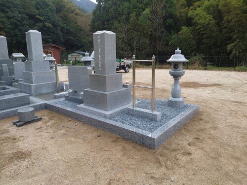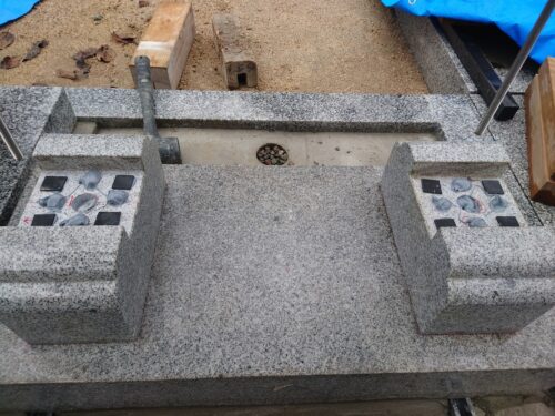 地震対策を考えるなら、このデザインの灯ろうはしないのですが、今回は古いお墓の灯ろうをそのまま設置させていただきました。