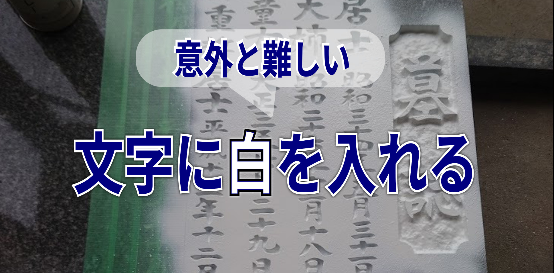 お墓の文字に色を入れるという話題です。特に白色は難しいです。