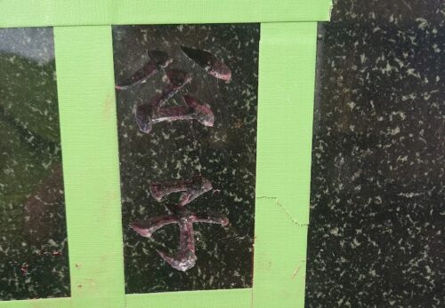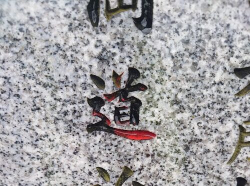 時々、お墓の戒名の一部に赤色(正確には朱色らしいですが。。。)になっているものがあります。これは、「まだ生きておられますよ(書いてみたらずいぶん失礼。。。)」という証になっています。