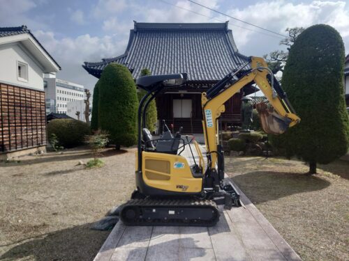 こいつで掘っていきます。いつもより深く掘らないといけないので、あまり石が出て来ないで、と願いながら、掘削していきます。