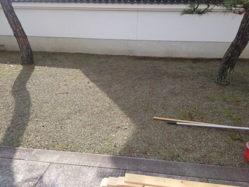 参道脇の松の木と松の木の間に設置させていただくので、基礎工事から取り掛かります。