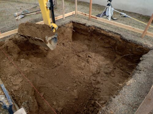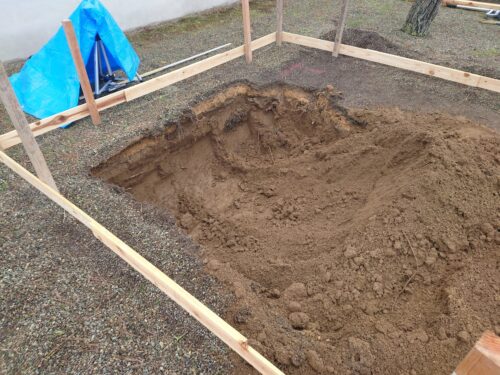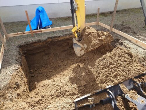 大体掘れました。3トンダンプ3台分の残土が出ましたよ。通常なら、1台か1.5台分くらいなんですけどね。結構しっかり掘りました。