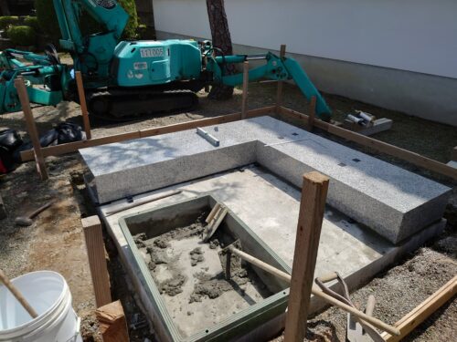 台石が設置出来たところ。大きい方の石が750キロ以上あります。