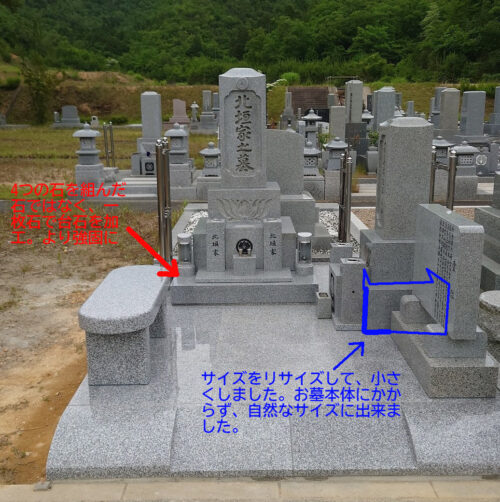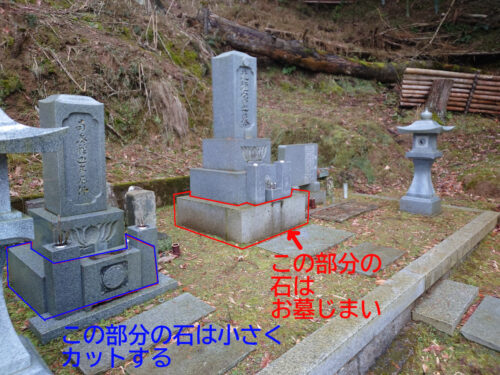 本来ならはみ出してしまう供養塔を小さくして、うまく納められました。(青線枠部分)