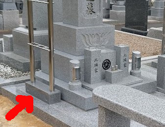 この赤枠の部分。お墓の下面。下の台石と接する部分です。窪んでいますよね。わかるかな。