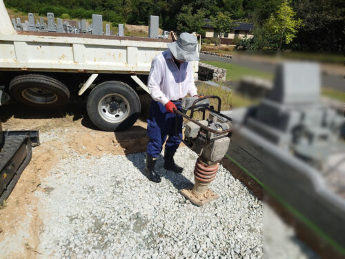 10センチ厚ずつ砕石を入れて転圧していきます。砕石は0-40のクラッシャー砕石です。