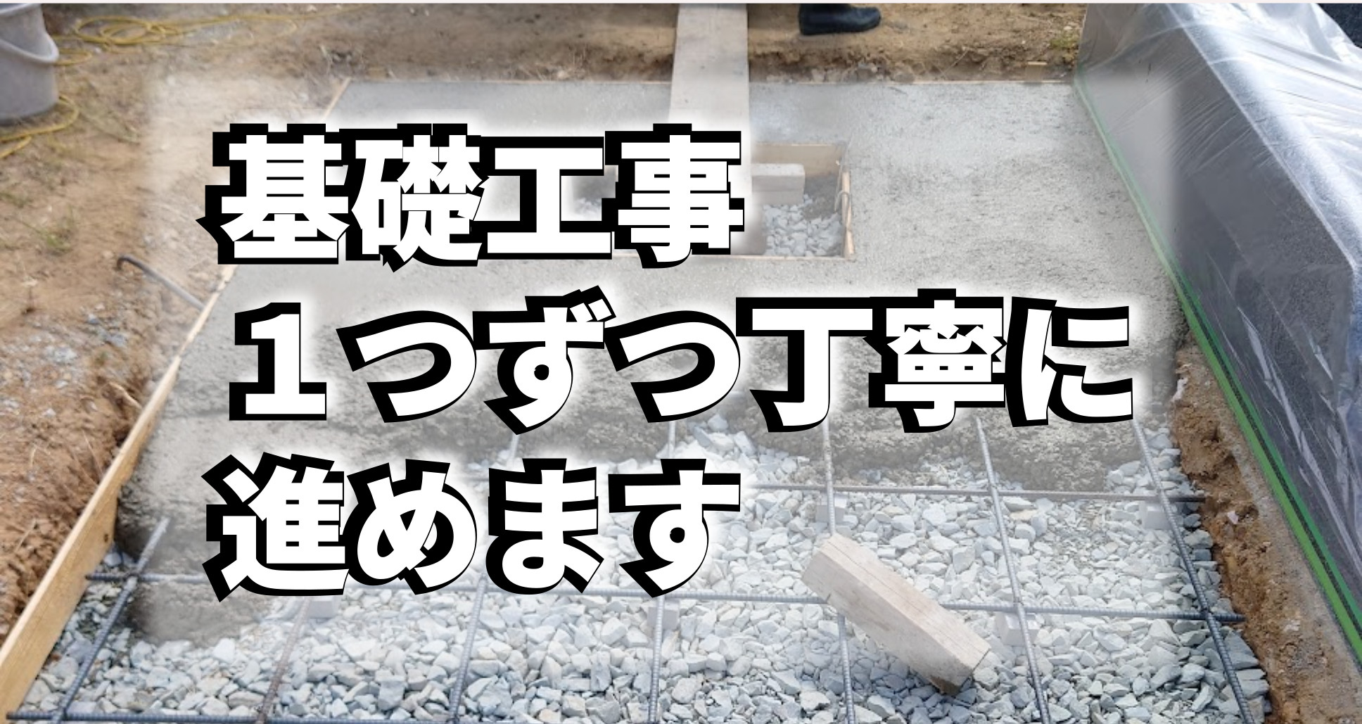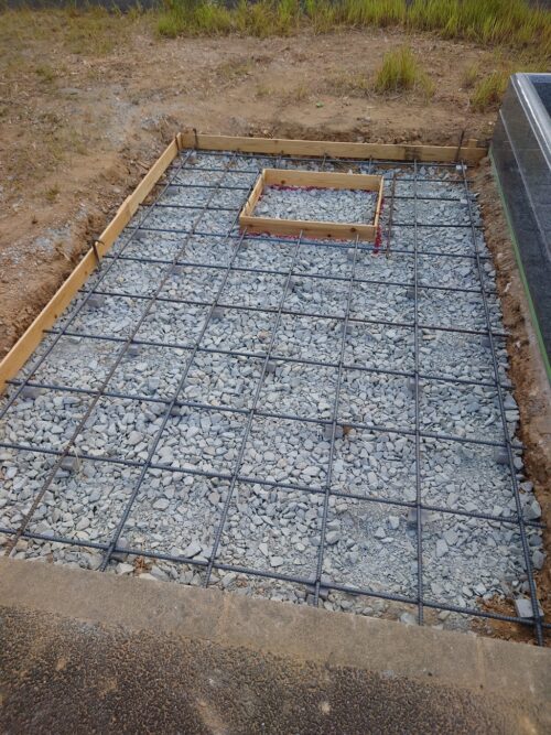 20㎝程度の厚みになったら、しっかりと転圧して、コンクリートの型組みと鉄筋を組んでいきます。
