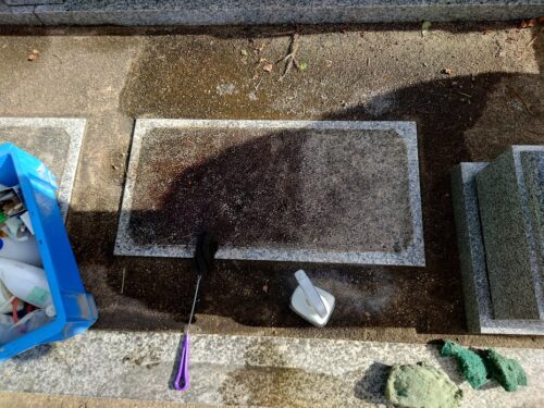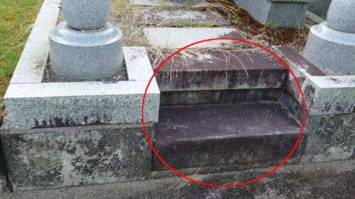 お墓の板石とか階段の石ってすごく汚れやすいですよね。