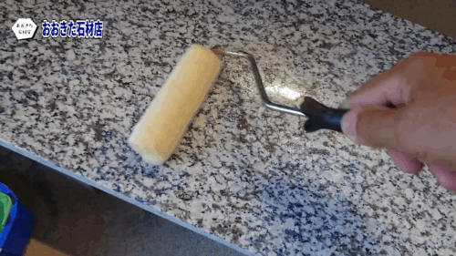 塗ってすぐは表面がぼんやりした感じになります。でも、この樹脂が乾燥していくと、透明になるので、下地の光沢のある石の状態に戻るんです。見た目はほぼわかりません。